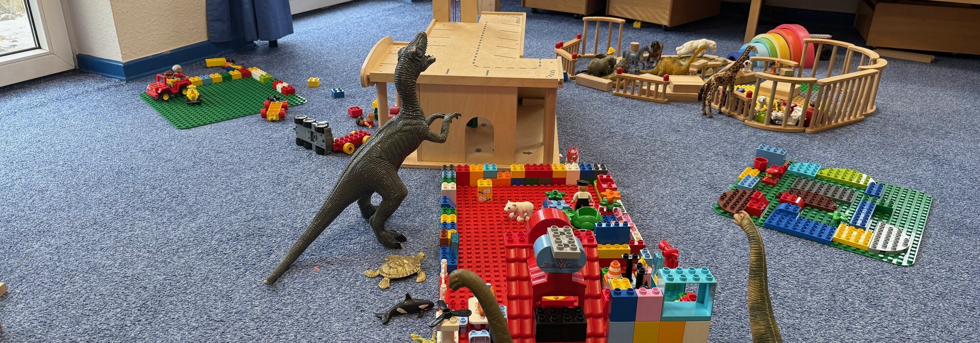 Wir haben bewusst alle Räumlichkeiten, die uns das Haus in den einzelnen Gängen lässt, genutzt und für das tägliche Spielen und Erleben der Kinder umgestaltet.